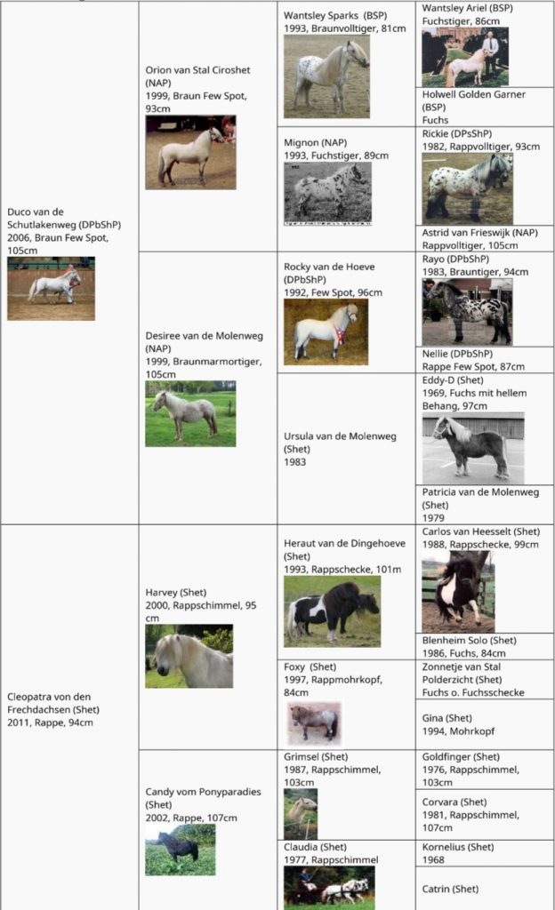 Farbvererbung: Braun, Rappe, evtl. Fuchs, 50% Tiger