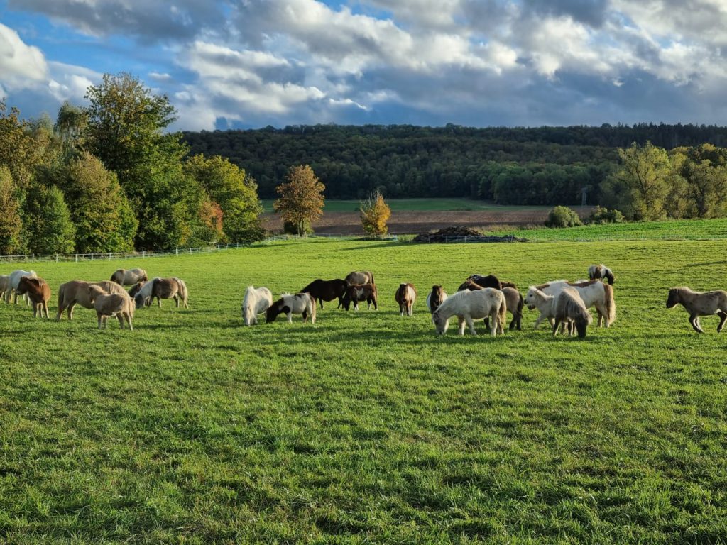 Derzeit leben unsere Ponys ganzjährig draußen, in mehreren kleinen Gruppen, die je nach Alter, Größe und auch Freundschaften zusammengestellt werden. Daher sehen unsere Ponys auch mal ungeputzt aus, trotzdem sind sie gesund und glücklich.